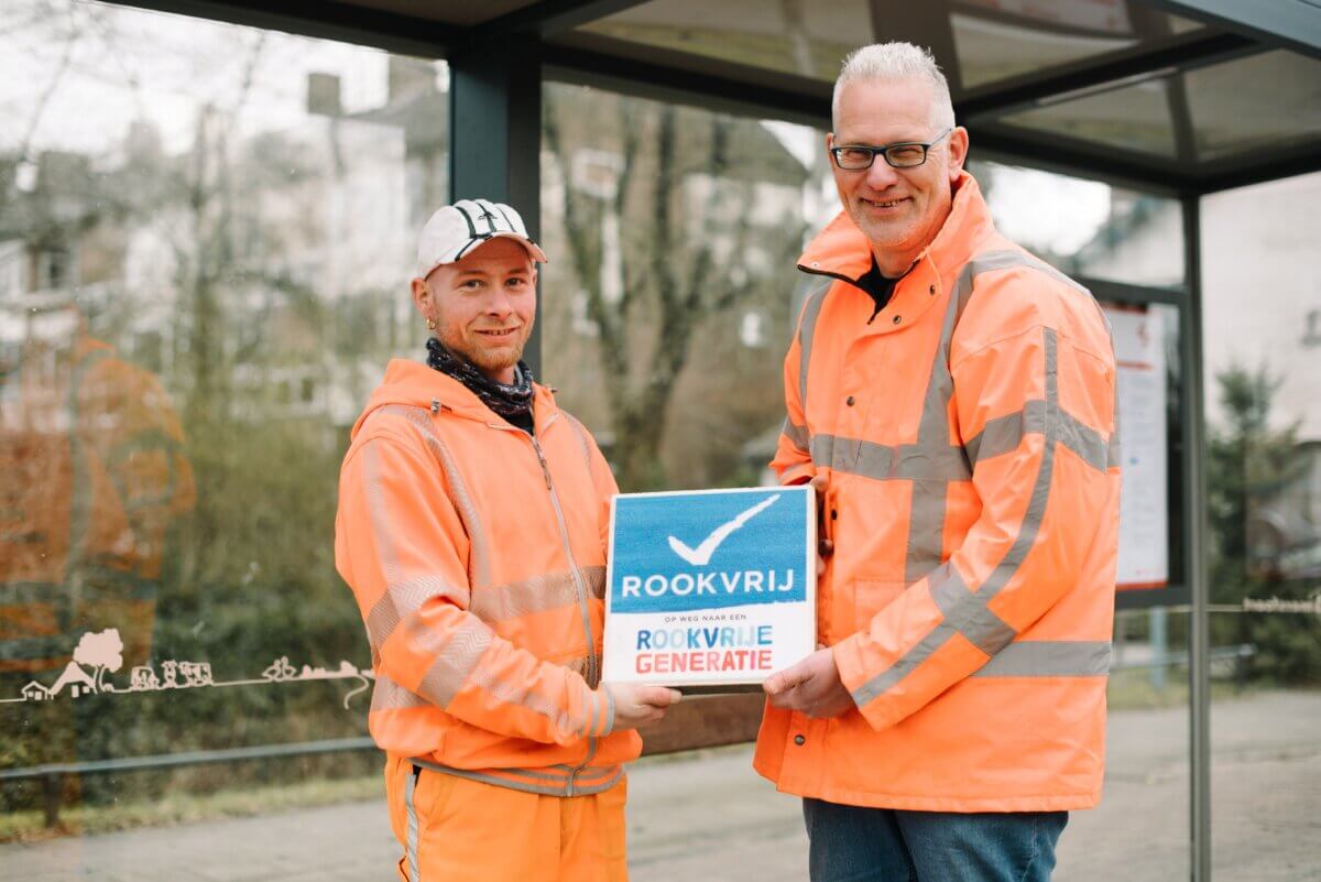 “Ik vind het niet gastvrij om in de rook op de bus te moeten wachten. Het is ongezond. Daarom hebben we deze maatregel genomen sinds vorig jaar. En dat had wat mij betreft nog wel eerder gemogen. We zijn eerst in gesprek gegaan met de busmaatschappij Syntus en zij hielpen mee door rookvrij-tegels bij de bushaltes te plaatsen. Alles om een signaal af te geven van: we leven hier gezond en dat doen we rookvrij zonder sigaretten. Bijzonder aandachtspunt was wel dat de buschauffeurs mee moesten werken door het goede voorbeeld geven. Want zien roken, doet roken. Dat vergt dan wel even wat gesprekken. Maar uiteindelijk zie je dat het maatschappelijke draagvlak steeds groter wordt.”